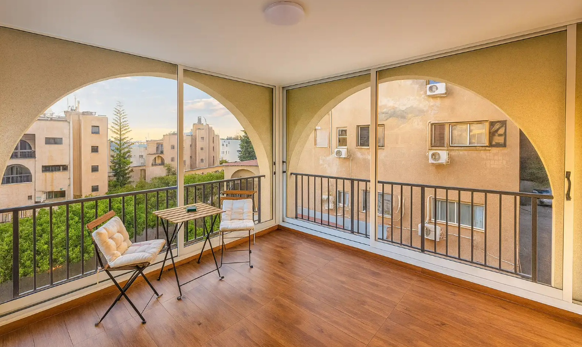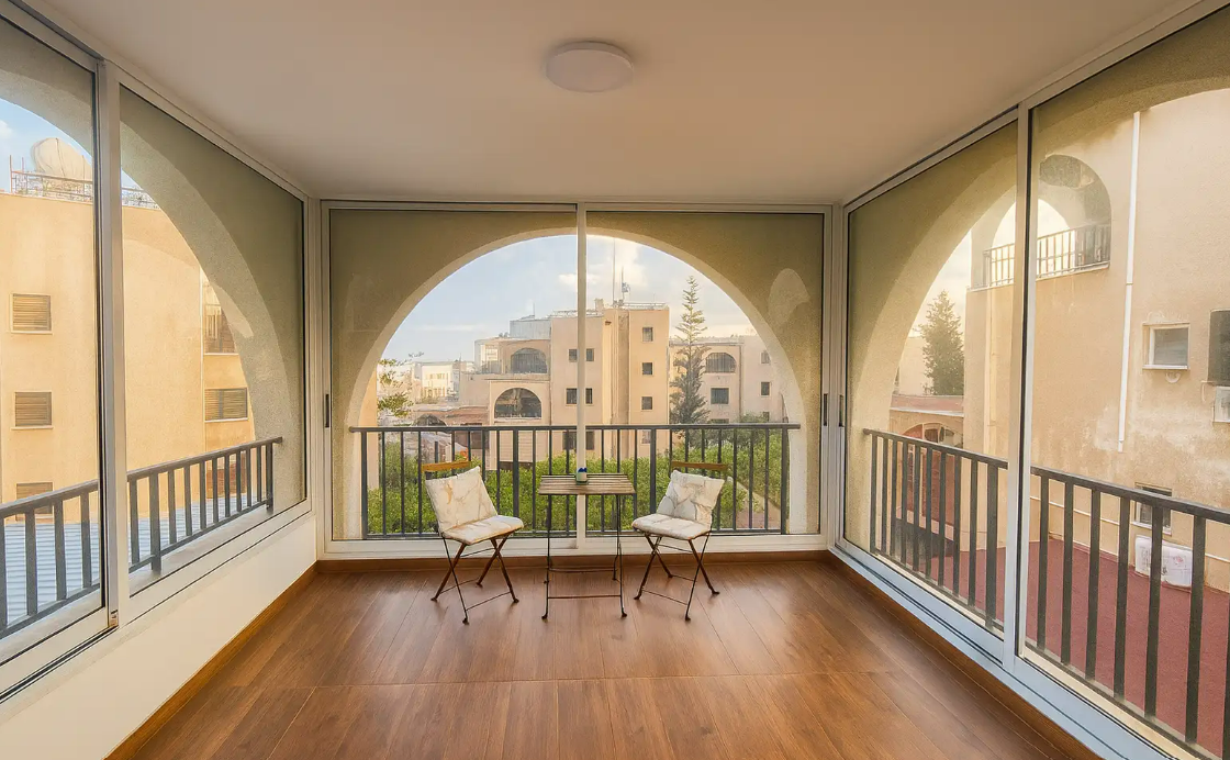 Balcony with enclosed glass for year-round use
