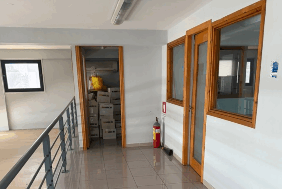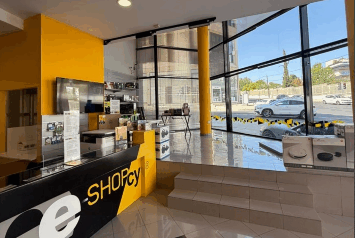 For sale: a premium commercial property consisting of Showroom No. 1 (ground floor), Mezzanine No. 1, and Storage No. 1 (basement), located in the Municipality of Strovolos, Agios Dimitrios Parish, Nicosia District, Cyprus.