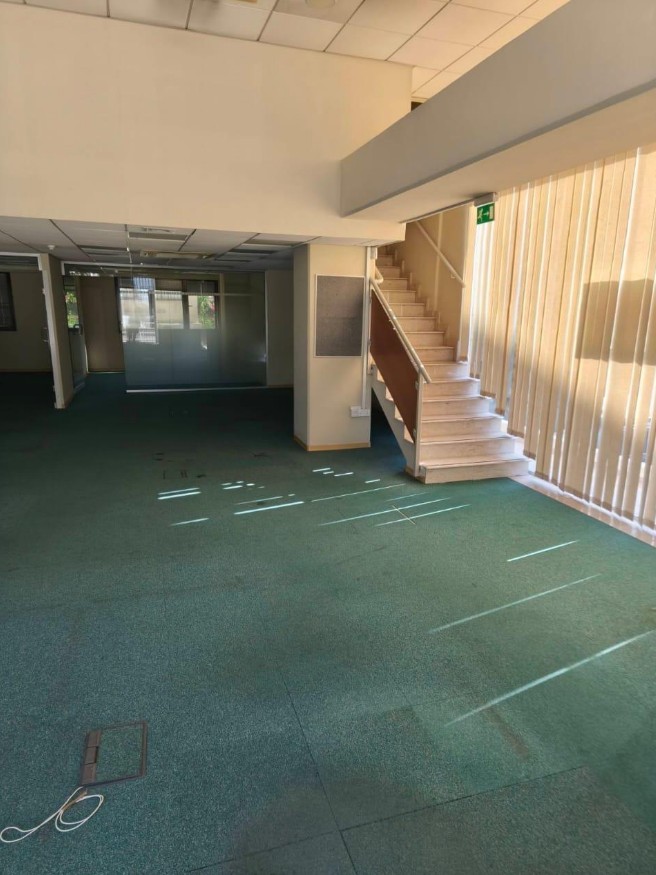 Built in 2004, this spacious commercial space spans 350 m² over two levels (ground floor plus mezzanine). The property is unfurnished and designed for maximum flexibility, suitable for offices, clinics, or business premises. The ground floor features a large open-plan area with three enclosed offices, while the mezzanine includes three additional enclosed offices, a kitchenette, and two toilets, providing convenience and comfort for both staff and visitors.