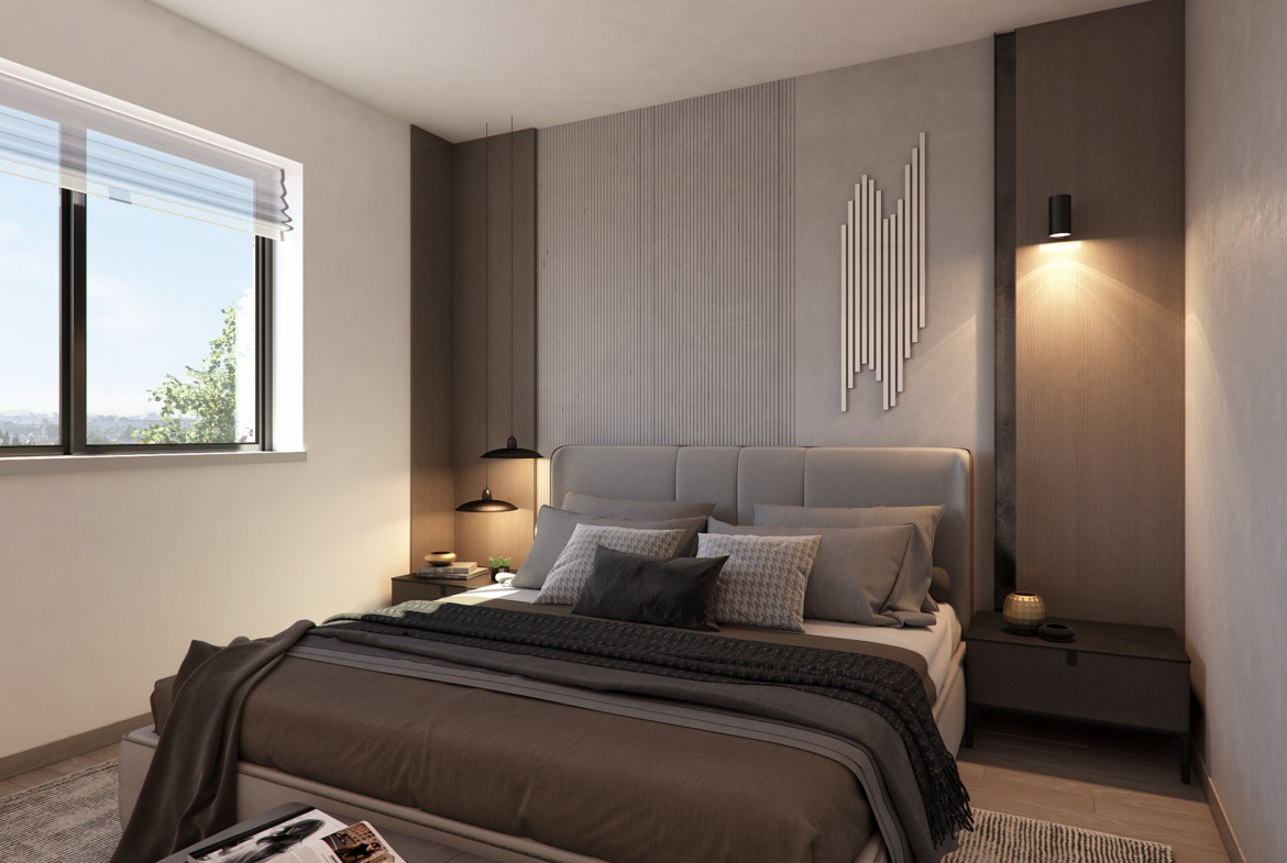 Bedrooms: Laminated parquet or premium ceramic flooring.