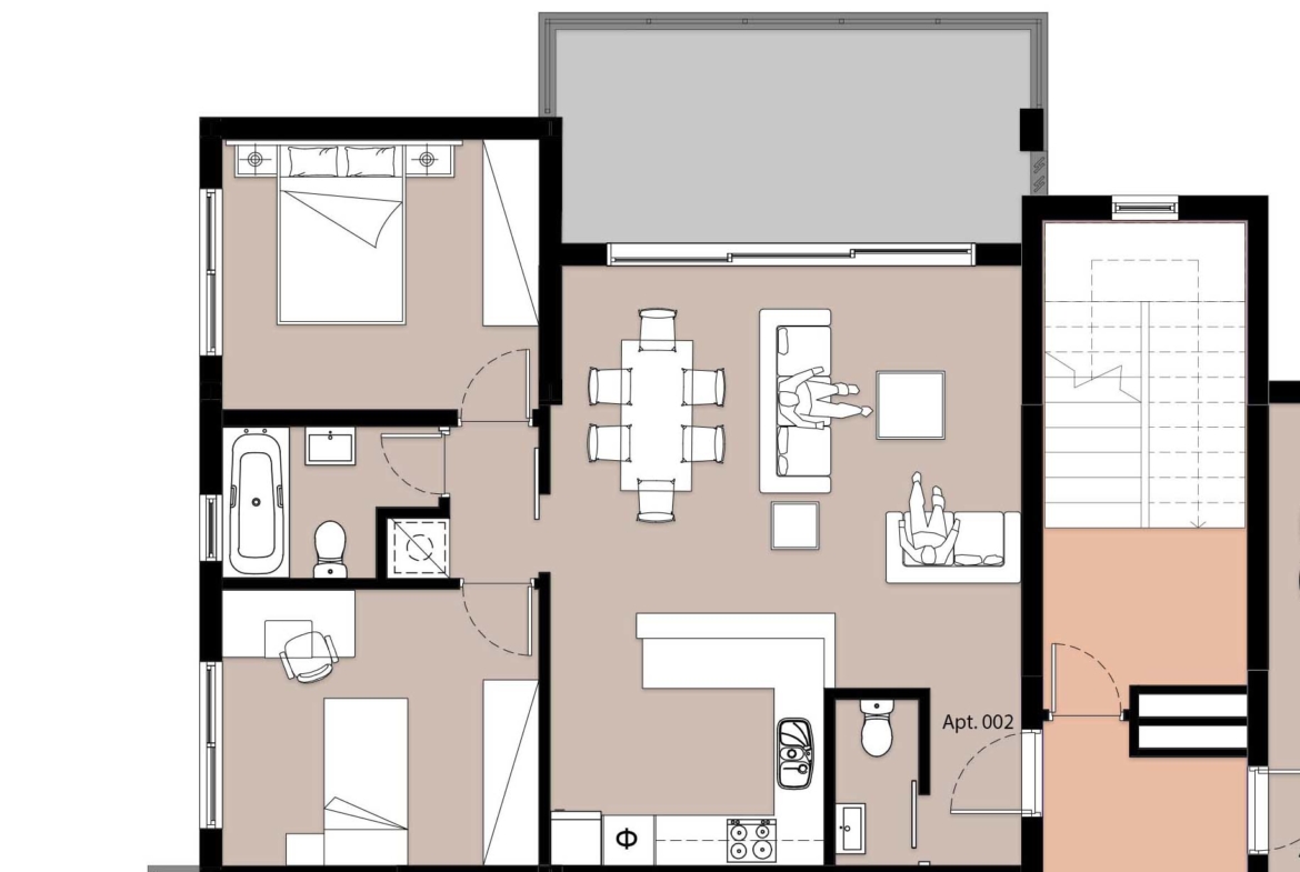 A contemporary 2-bedroom apartment in a stylish 4-floor building built with modern architecture, privacy, and superior energy performance.