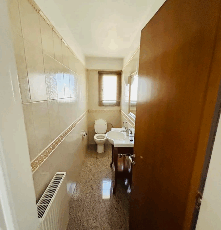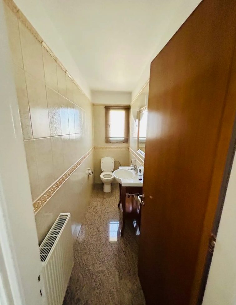 Set on the 1st floor and covering a generous 176 m², the apartment is arranged over two levels, creating a comfortable and practical layout. The first level welcomes you with an entrance hall featuring wardrobe space, followed by a sitting and living room, an elevated dining area, and a large kitchen with built-in appliances and a dining space. This floor also includes two bedrooms, a main bathroom, and a guest WC.