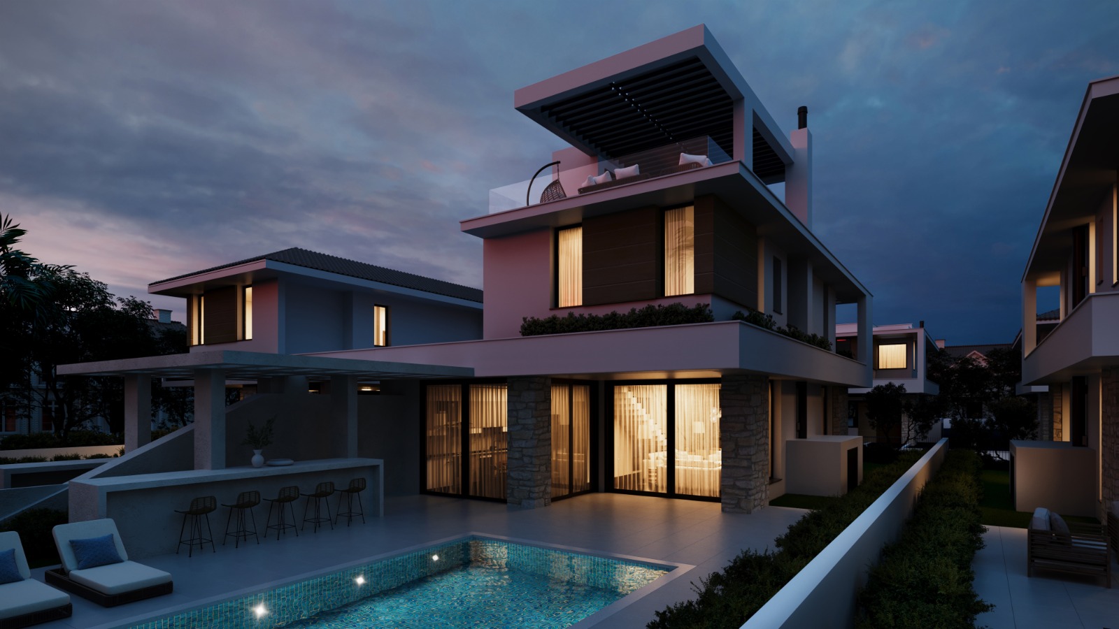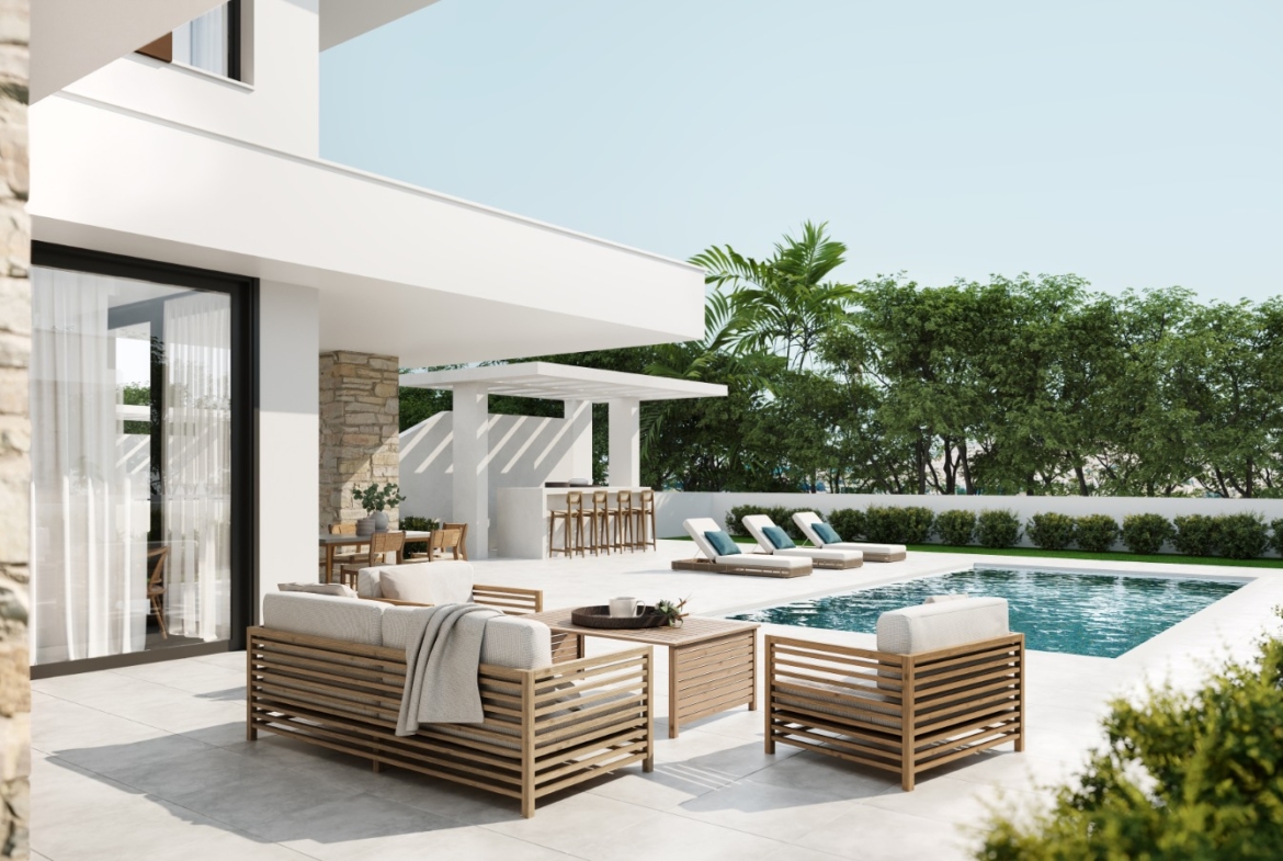 Discover refined coastal living in the peaceful Oroklini area, just minutes from the vibrant city of Larnaca. Situated approximately 650 meters from the Mediterranean coast, this exclusive villa development offers the perfect balance between privacy and seaside lifestyle.