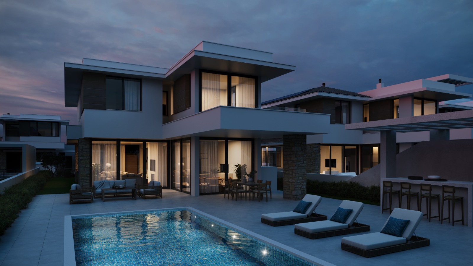 Each villa features spacious open-plan living and dining areas, stylish modern kitchens, and comfortable bedrooms filled with natural light. Generous plot sizes allow for landscaped gardens and the option of a private swimming pool — ideal for entertaining or relaxing in total privacy.