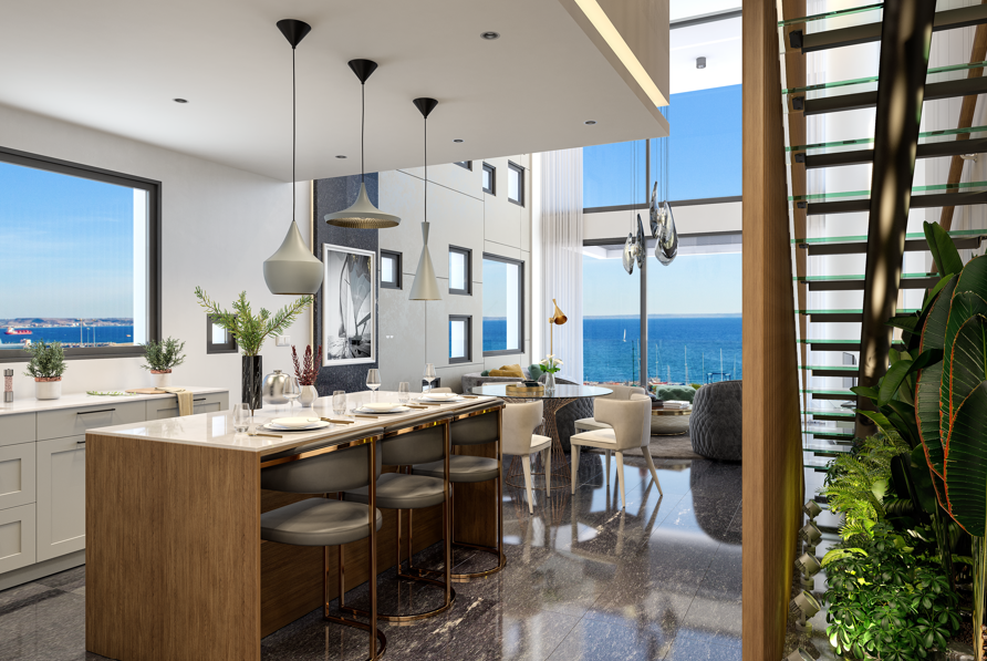 Live in the vibrant center of the city while enjoying the tranquility of top-floor living and uninterrupted sea views.
