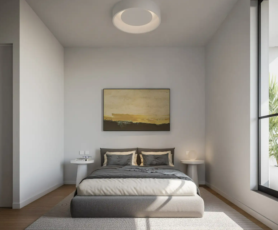 Comfortable bedroom with natural light