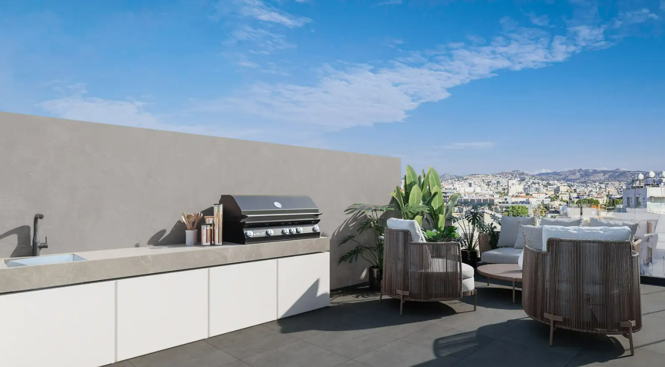 Just a short distance from Makariou Avenue, one of the city’s main commercial hubs, the property is surrounded by shops, cafés, restaurants, and everyday amenities. The city centre is within easy walking distance, while schools, services, and key facilities are close by, making daily life convenient and efficient.