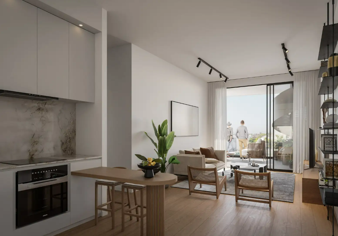The apartment features a functional open-plan living and kitchen area, two comfortable bedrooms, and a covered veranda ideal for outdoor relaxation. High-quality materials and modern architectural design ensure a stylish and practical home, perfect for both owner-occupiers and investors.