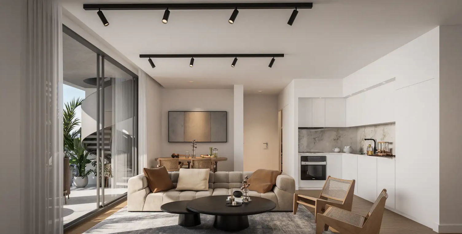 This brand-new studio apartment forms part of a modern residential building with contemporary architecture and quality finishes.