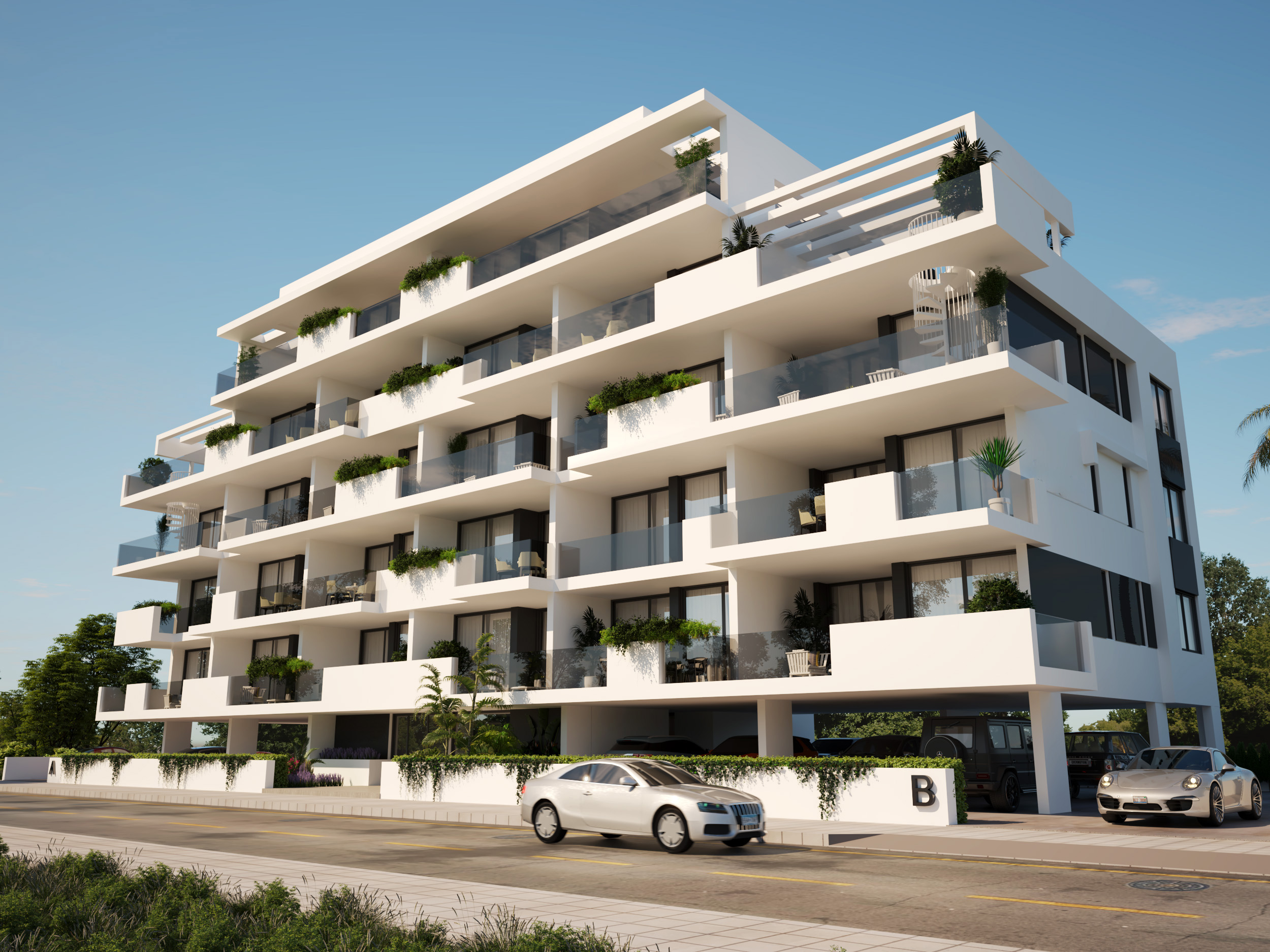 Discover refined coastal living in the heart of Larnaca, just moments from the vibrant promenade of Finikoudes Beach and only 80 meters from the golden sands of Mackenzie Beach.
