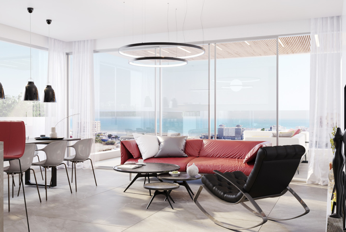 Discover refined coastal living in the heart of Larnaca, just moments from the vibrant promenade of Finikoudes Beach and only 80 meters from the golden sands of Mackenzie Beach.