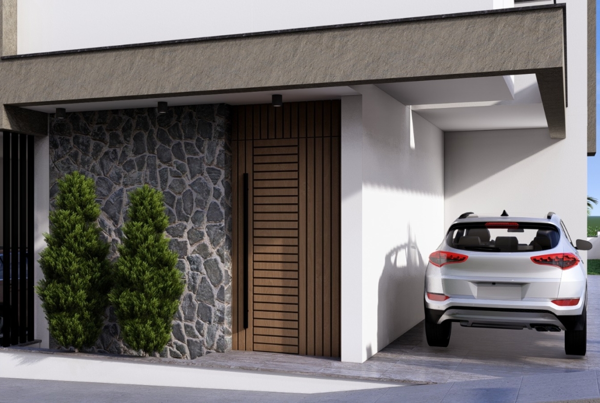 The home features two spacious bedrooms with the option to create a third bedroom, along with three modern bathrooms. With an internal covered area of 104.2 m² on a 140 m² plot, the layout maximizes comfort, natural light, and efficient use of space.