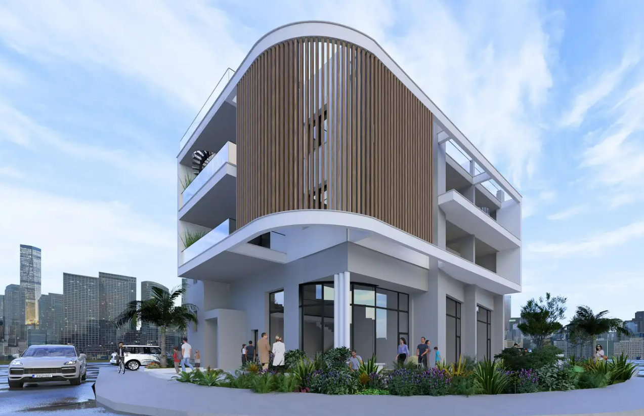 This under-construction 1-bedroom apartment (No. 201) stands out with its generous layout and private rooftop space, offering a total area of 97 m².
