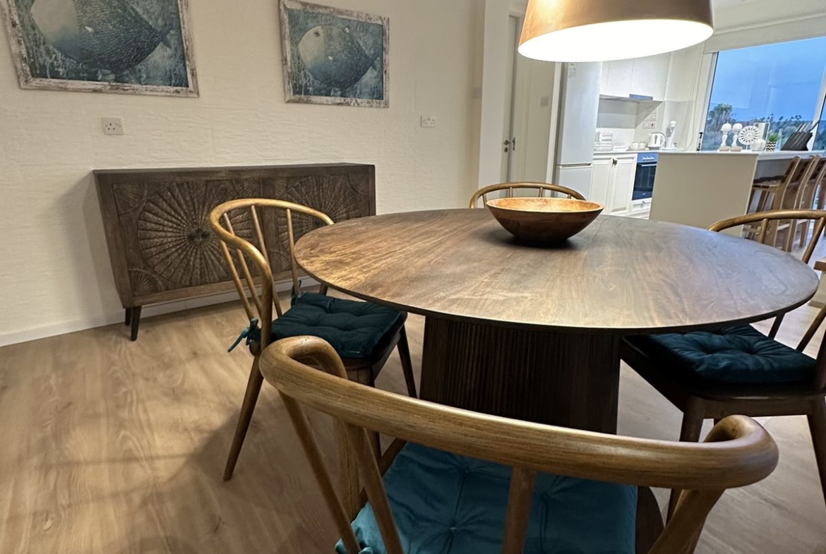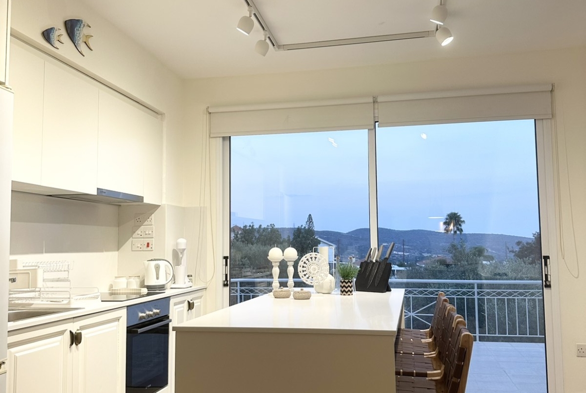 The villa features 184 sq.m. of internal covered space complemented by 105 sq.m. of verandas, both covered and uncovered, providing ample areas for relaxation and outdoor enjoyment. Inside, the open-plan living, dining, and kitchen area is thoughtfully designed for both comfort and functionality. Large patio doors open onto the veranda and private swimming pool, allowing natural light to fill the space while offering seamless indoor-outdoor living.