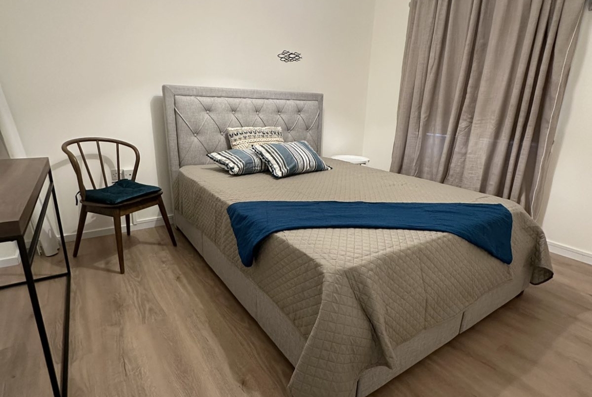 The property offers four well-appointed bedrooms. Two are located on the main level, including a master bedroom with a spacious en-suite bathroom and walk-in shower. An additional bedroom with en-suite facilities and a shared bathroom complete this level. The lower level includes the fourth bedroom, an additional bathroom, and a second fully equipped kitchen, along with a balcony overlooking the countryside.